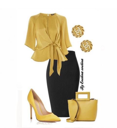 Amarelo com tons claros, look simples e sofisticado para o trabalho.